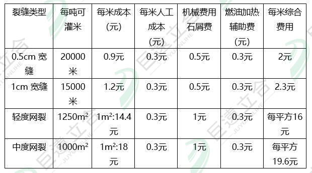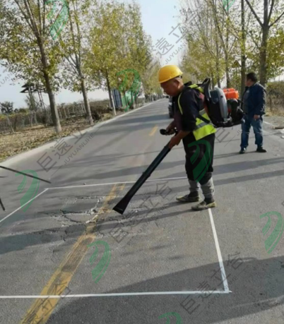 寬度大于2mm的裂縫,施工前用鐵鉤將裂縫內雜物清理干凈,必要時使用鋼絲刷等工具進行清理。然后用吹風機將面層污物吹掃干凈。經處理后的網裂表面應平整、無松散、無油脂及其他污物。