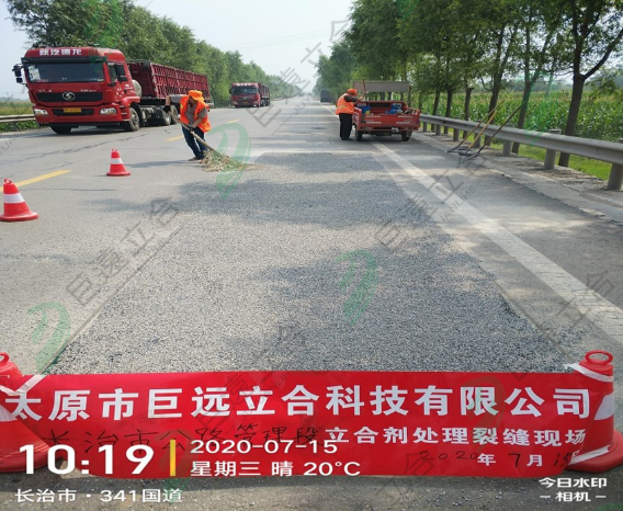 - 適應性強、全天候的操作:立合劑在使用時對施工環(huán)境溫度要求較低(-10℃—+45℃),基本上不受氣候、季節(jié)條件限制,一年四季可隨時使用,尤其在秋冬和早春季路面病害區(qū)域開脹時施工效果更好。