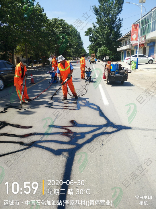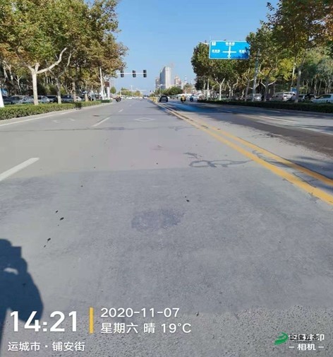 2019年11月13日我公司受運城市市政管理處邀請,在運城市鹽湖區(qū)鋪安街處理瀝青路面網狀裂縫