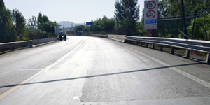 2020年4月28日我公司受平順公路管理段邀請,在G341國道K729+450米處苗莊立交橋,采用“立合劑”處理瀝青路面龜網(wǎng)裂縫,請看下圖。瀝青路面龜網(wǎng)裂縫處理前:保持裂縫干凈干燥,用吹風機把裂縫當中雜物吹干凈,用紙膠帶把病害區(qū)域貼整齊。
